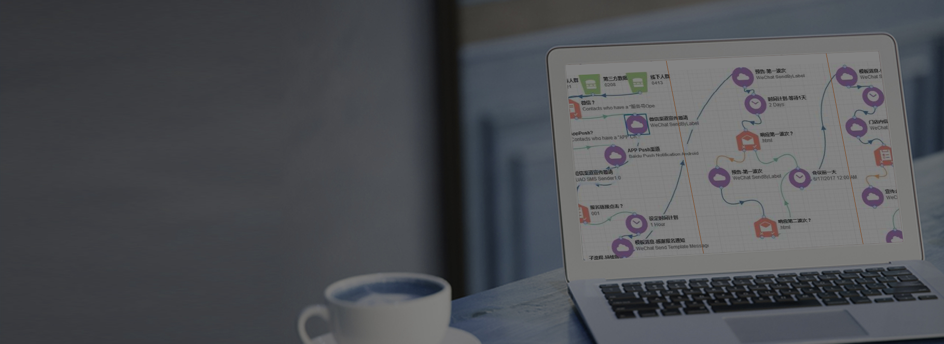 以單個用戶為核心,通過微信、郵件、短信、網(wǎng)站,全渠道與單個用戶溝通。監(jiān)測用戶各渠道行為,并根據(jù)用戶行為,自動選擇渠道,推送內(nèi)容。